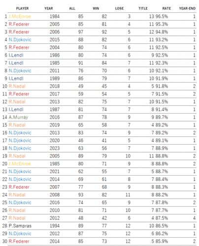 今年も、「年間ランキング1位」はジョコビッチ。 これでジョコビッチ8回目。 年間ランキング1位獲得数というとP.サンプラス6回 J.コナーズ、R.フェデラー、R.ナダル5回も凄い記録です。 この記録にちなんでジョコビッチは「今シーズンはキャリアを通しても完…